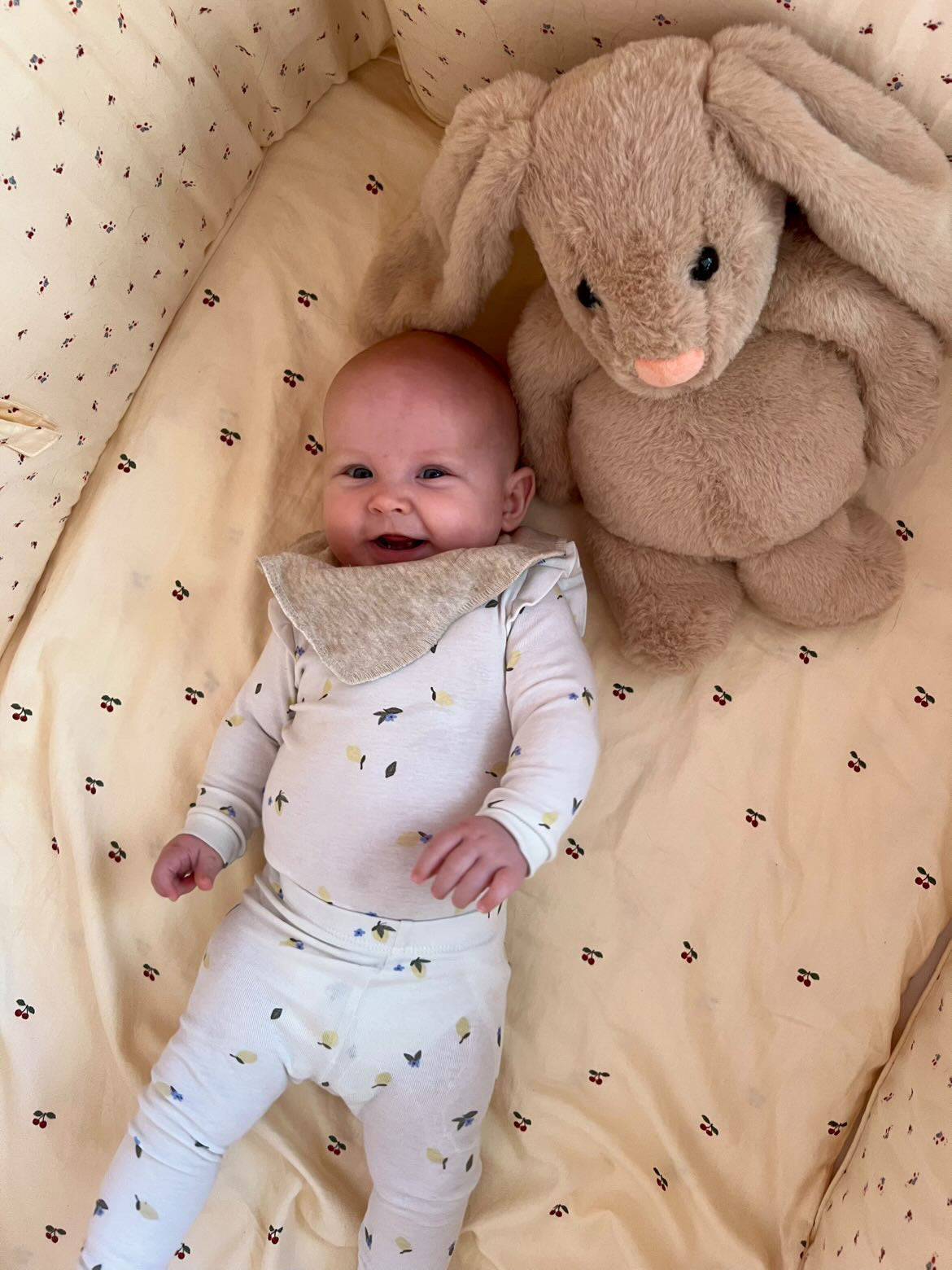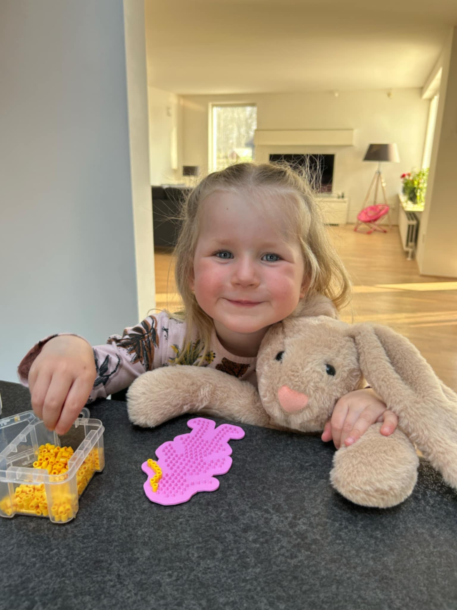 Tyngdebamsen er designet med kærlighed til detaljen: Blød, slidstærk og fyldt med små vægtede kugler, der fordeler sig jævnt i kroppen. Den føles som et varmt kram, hver gang du holder den tæt.